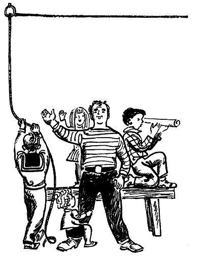 Марен была освобождена от дежурств, потому что она помогала маме готовить еду. Папа мыл посуду после завтрака и после обеда. Таким образом, у всех были свои обязанности, но всё равно у них оставалось ещё уйма времени, чтобы отдыхать и веселиться.