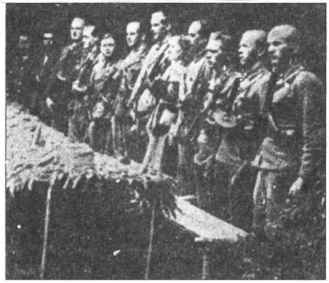Солдаты Украинской Повстанческой армии празднуют Пасху (1944год). Большинство носят советскую или польскую униформу, многие вооружены трофейными ППШ.