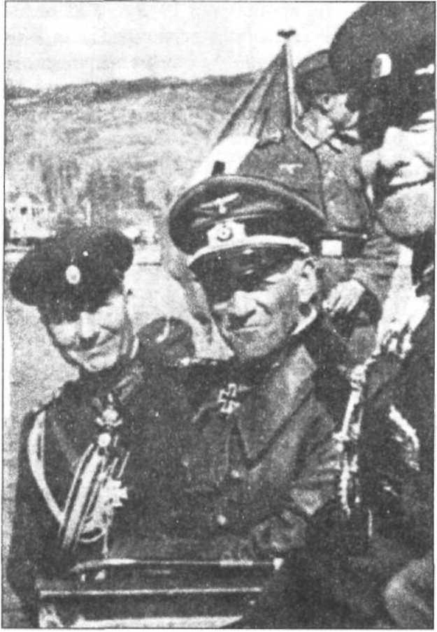 Немецкий генерал в обществе болгарского генерал-лейтенанта (слева) и болгарского штаб-офицера. На груди штаб-офицера виден значок летчика 1-й Мировой войны.