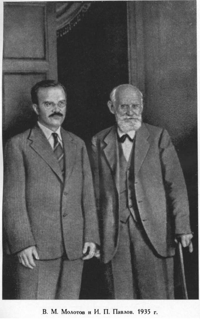 Вы слышали и видели (говорит Иван Петрович, обращаясь к иностранным гостям), какое исключительно благоприятное положение занимает в моем отечестве наука. Сложившиеся у нас отношения между государственной властью и наукой я хочу проиллюстрировать только примером: мы, руководители научных учреждений, находимся прямо в тревоге и беспокойстве по поводу того, будем ли мы в состоянии оправдать все те средства, которые нам представляет правительство. (Товарищ Молотов с места: «Уверены, что безусловно оправдаете!». Шумные аплодисменты). Как Вы знаете, я экспериментатор с головы до ног. Вся моя жизнь состояла из экспериментов. Наше правительство также экспериментатор, только несравненно более высокой категории. Я страстно желаю жить, чтобы увидеть победное завершение этого исторического социального эксперимента. (Под бурные аплодисменты присутствующих И. П. Павлов провозглашает тост «за великих социальных экспериментатовов»).