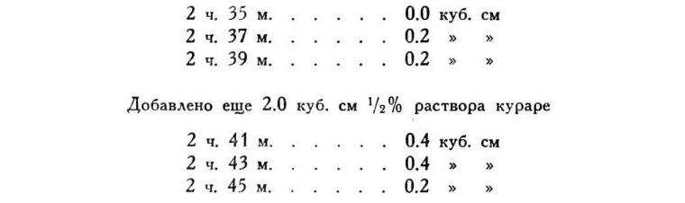 9-й о п ы т. Кураризированная собака. Слюна собирается из правой железы. Эта же собака уже употреблялась на другом опыте. Во время всей серии опытов через короткие интервалы добавлялось кураре.