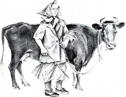 — Ну, сынок, бери её и веди да присматривай там за ней дома. Она у меня смирная, не билась, не бодалась, ела что давали. — И тётенька отдала Миколке верёвку и клочок прошлогодней травы.