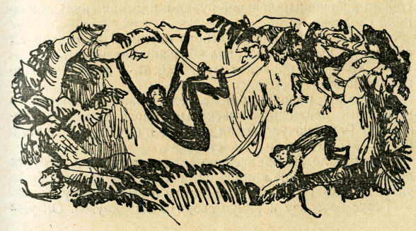 В свете угасающего дня можно было разглядеть на деревьях около дюжины обезьян. Посмотрев некоторое время на огонь, резусы начинали с головокружительной быстротой прыгать с ветки на ветку и с дерева на дерево, затем останавливались и снова созерцали необычное зрелище.
