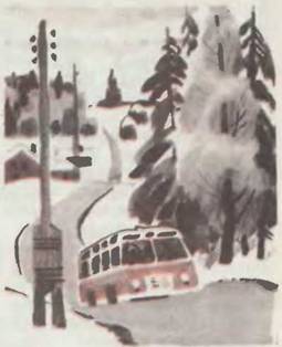 Автобус идёт неторопливо, басовито подвывает мотором на еле заметных подъёмах, словно жалуется на перегрузку. Народу и правда много. Володю притиснула к окну незнакомая тётя с корзиной. В корзине кто-то возится и похрюкивает. А учительницу Зою Алексеевну и ребят не видно за чужими головами. Но Володя не скучает. Он лишь слегка досадует на водителя, когда автобус начинает буксовать в льдистой колее. Подъёмы надо брать с разгона! Когда Володя станет шофёром, он не будет ползать на машине, как черепаха. На то и машина, чтобы скорость была.