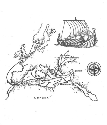 Дней через пять мы к водам светлоструйным потока Египта Прибыли; в лоне потока легкоповоротные наши Все корабли утвердив, я велел, чтоб отборные люди Там на морском берегу сторожить их остались; другим же Дал приказание с ближних высот обозреть всю окрестность. Вдруг загорелось в них дикое буйство; они, обезумев, Грабить поля плодоносные жителей мирных Египта Бросились, начали жен похищать и детей малолетних, Зверски мужей убивая,— тревога до жителей града Скоро достигла, и сильная ранней зарей собралася Рать; колесницами, пешими, яркою медью оружий Поле кругом закипело; Зевес, веселящийся громом, В жалкое бегство моих обратил, отразить ни единый Силы врага не посмел, и отвсюду нас смерть окружила...В другом месте "Одиссеи" говорится: