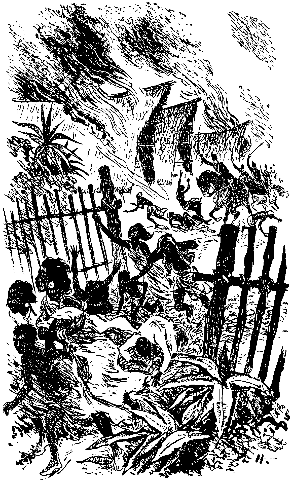 Деревянная ограда кампонга разлетелась в двух-трёх местах от ручных бомб. Кампонг сразу запылал с трёх концов.
