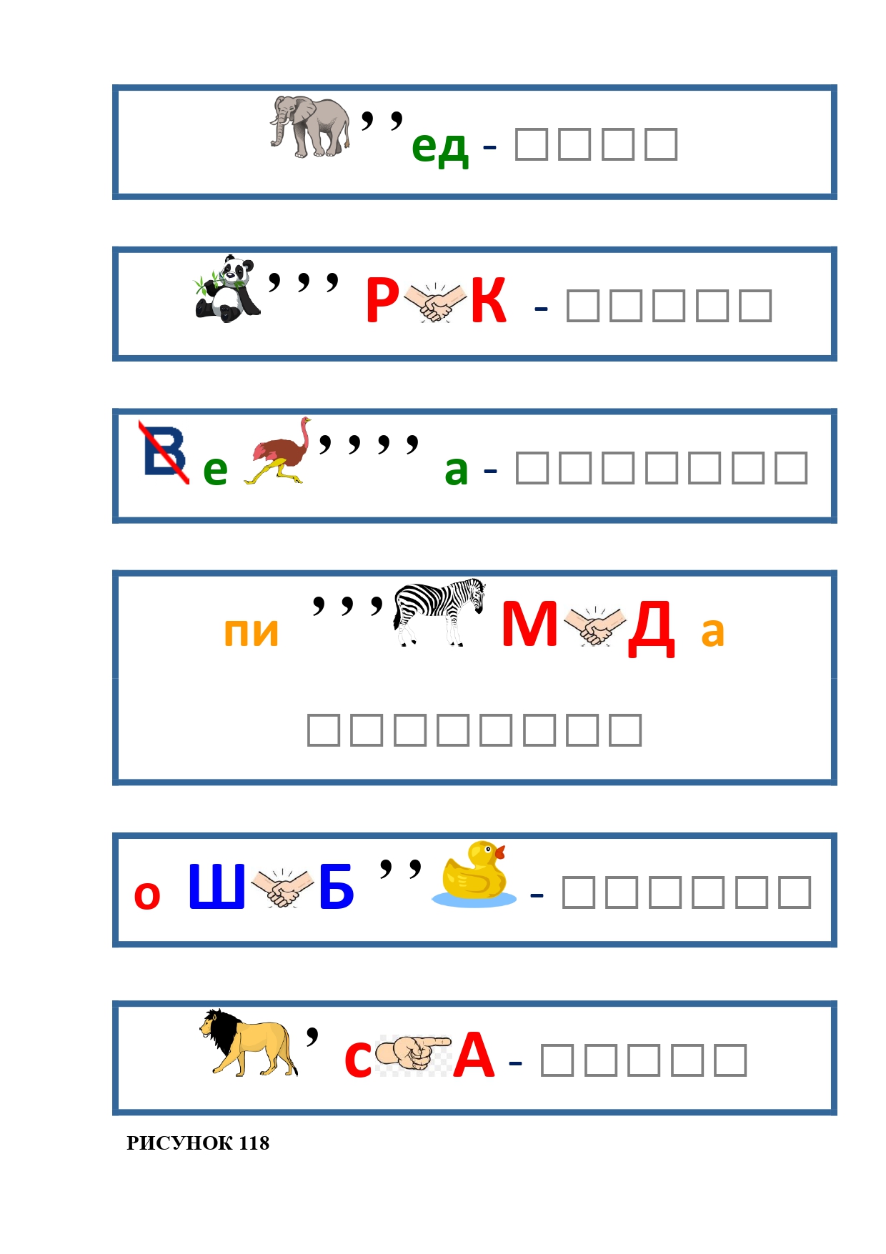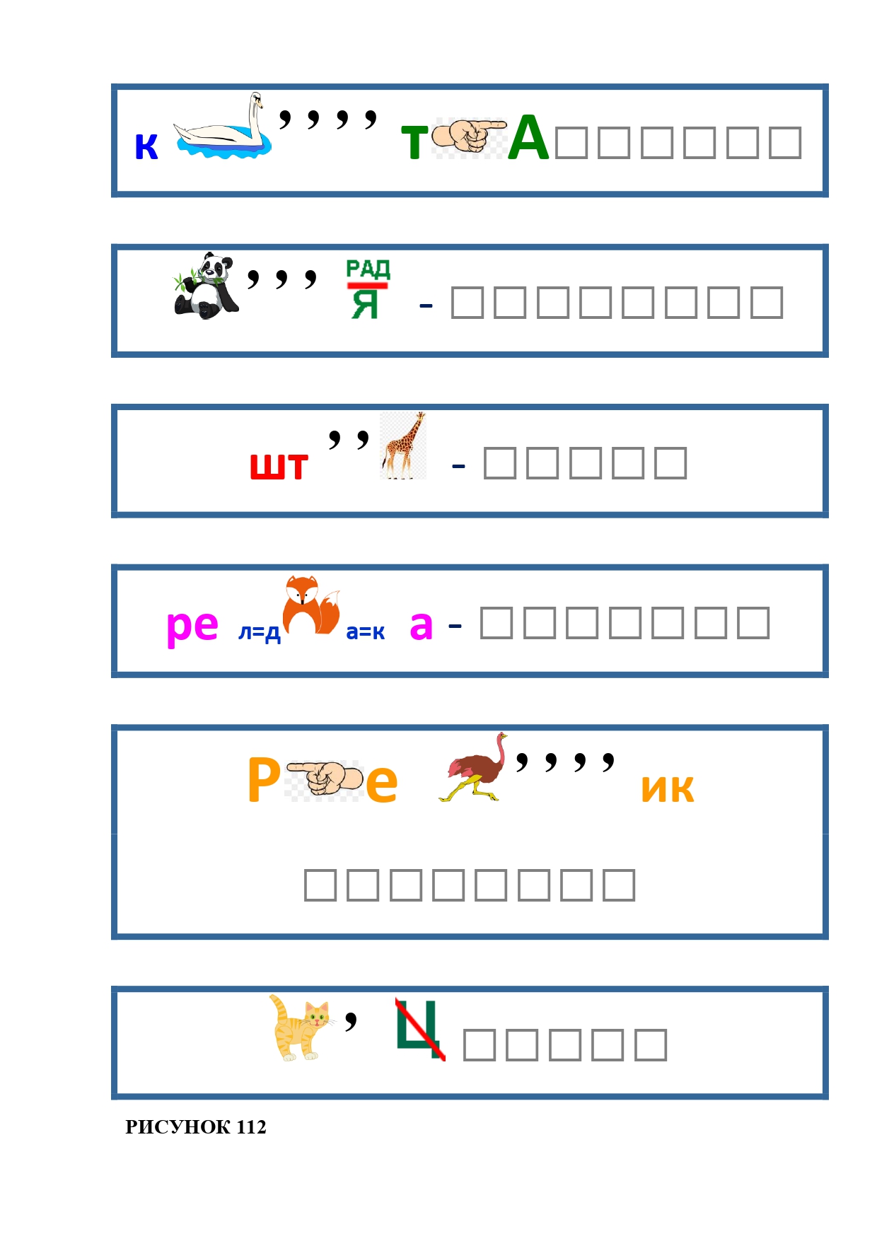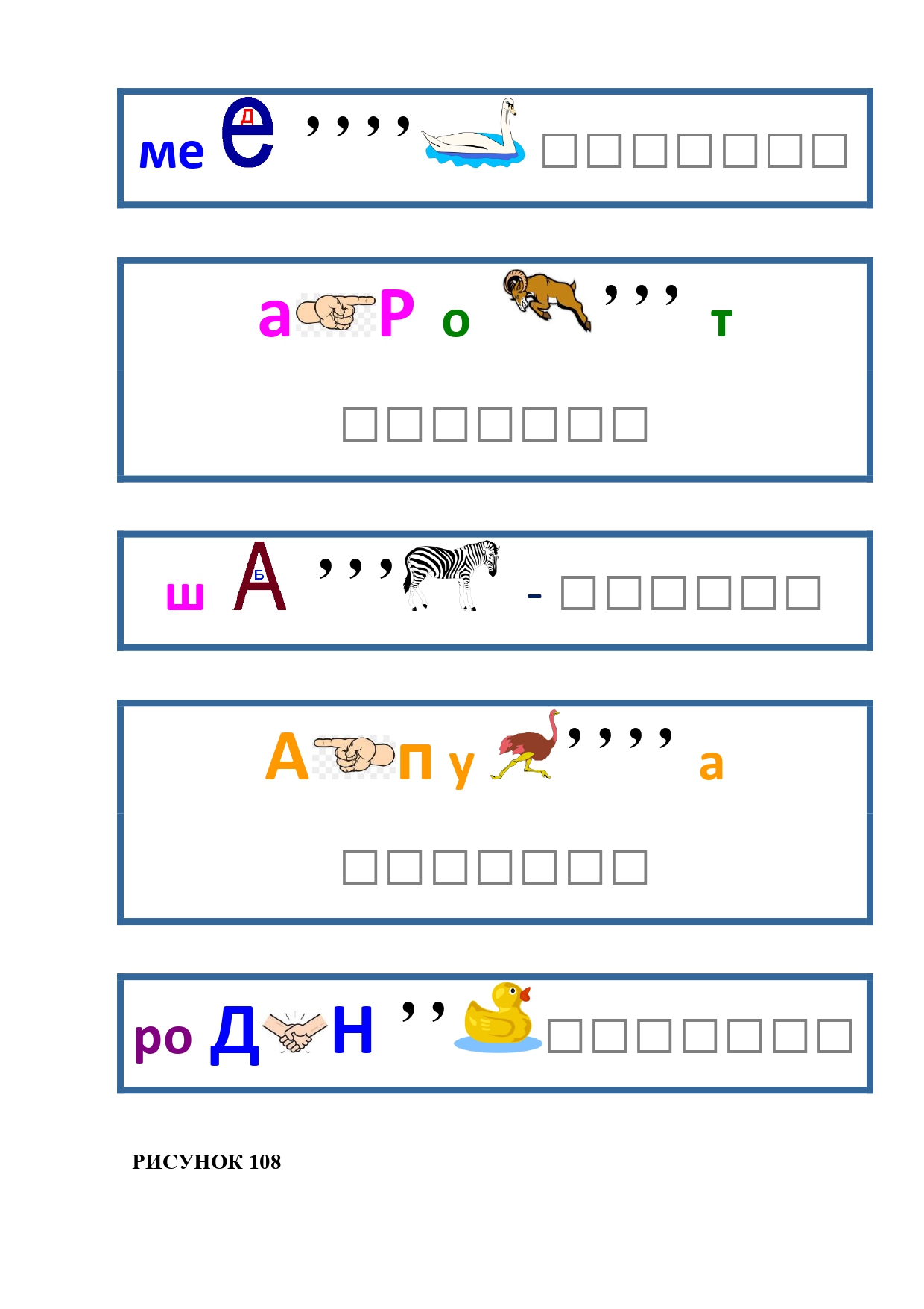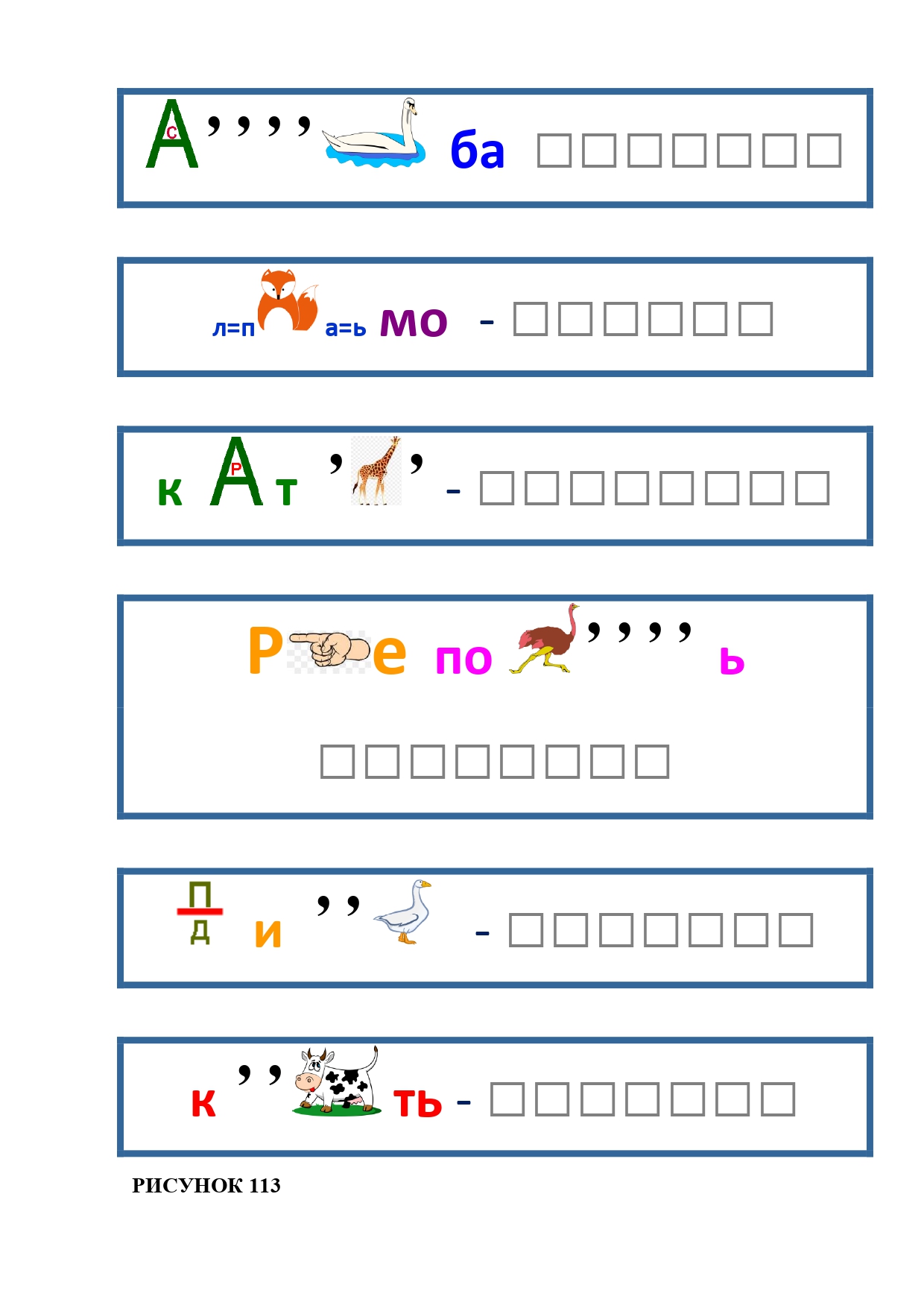 РИСУНОК 6: козёл, конь, кот, лебедь, лама, пчела
