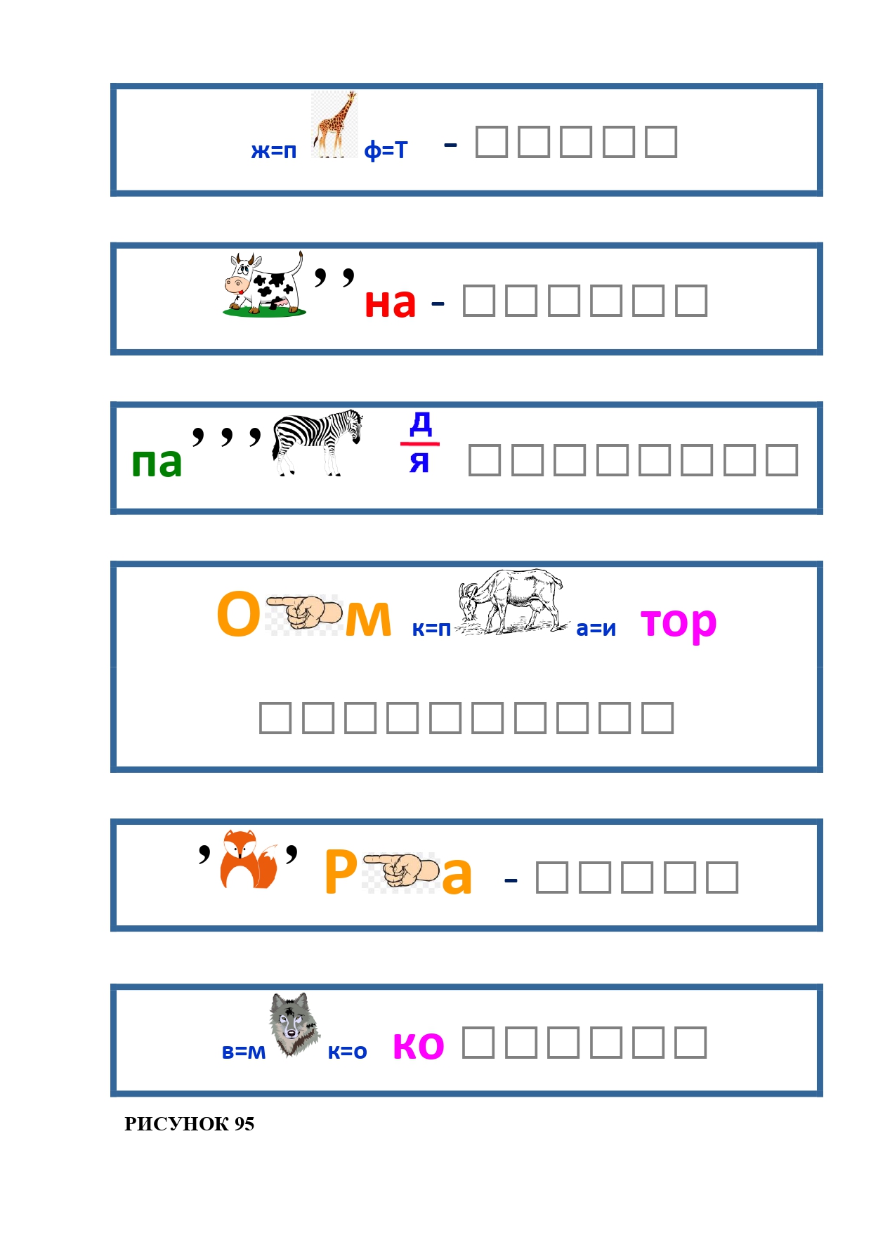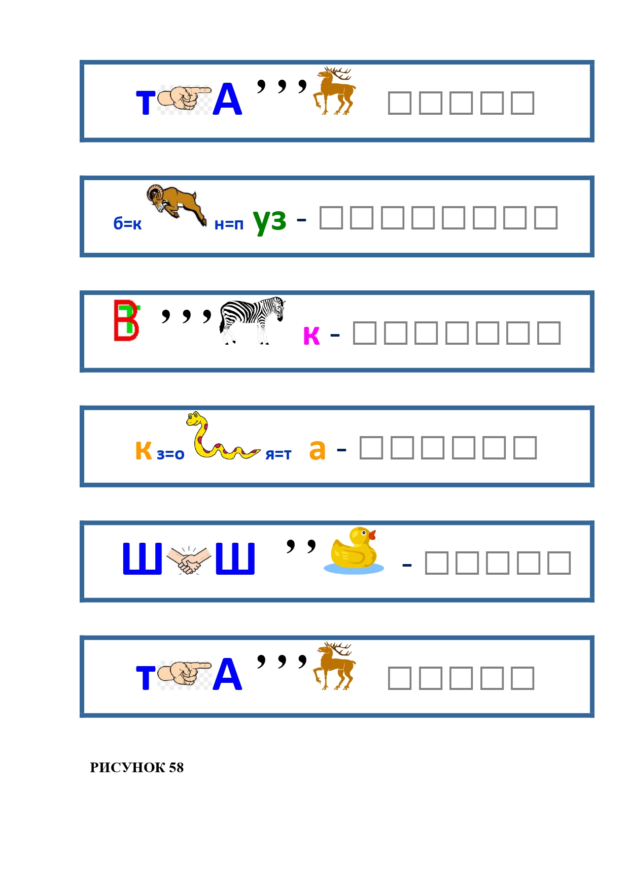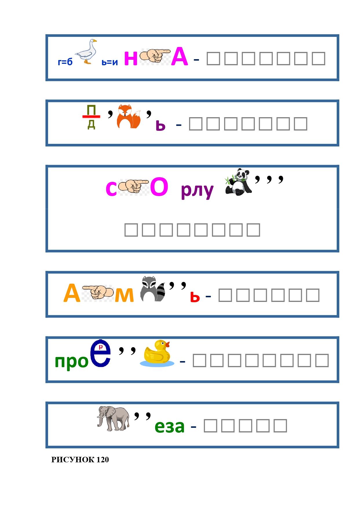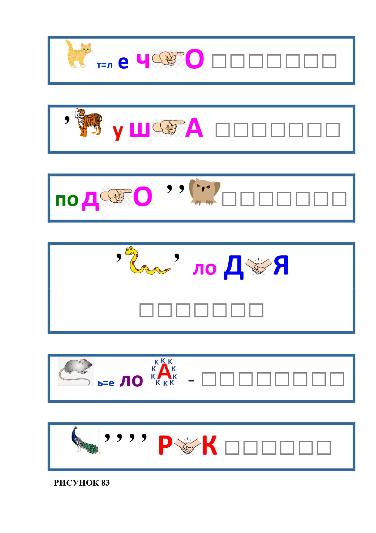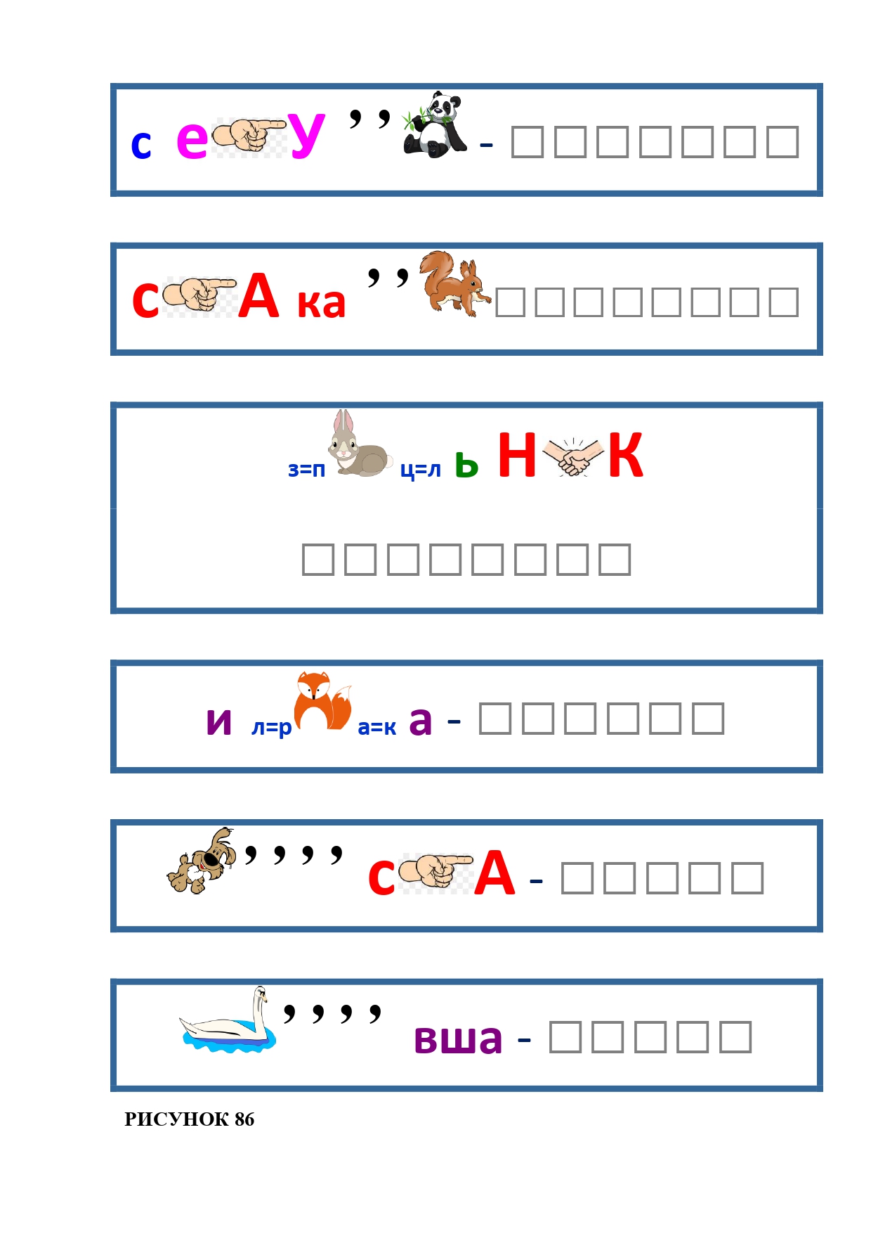 РИСУНОК 6: козёл, конь, кот, лебедь, лама, пчела