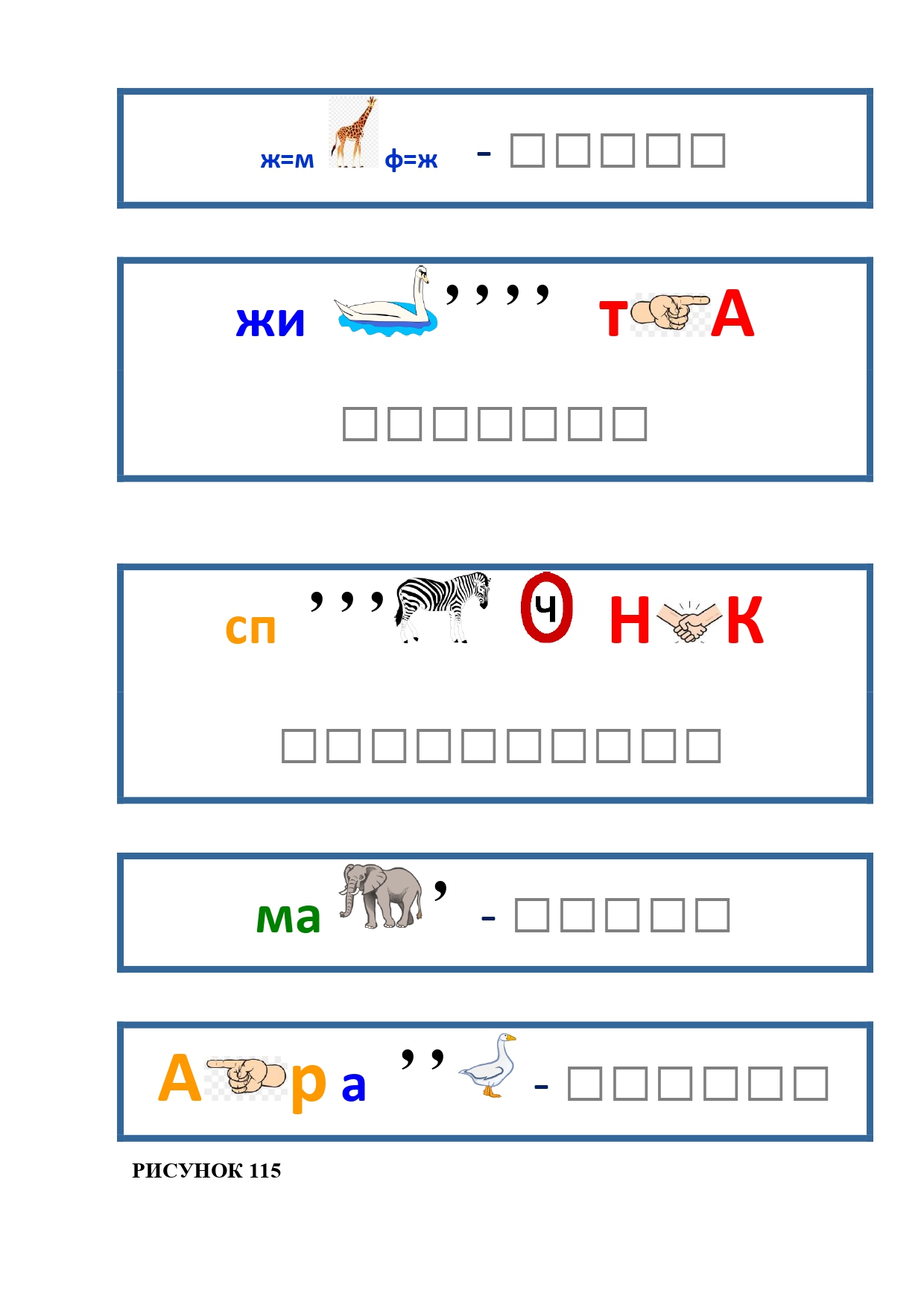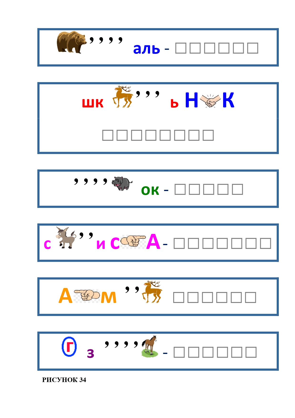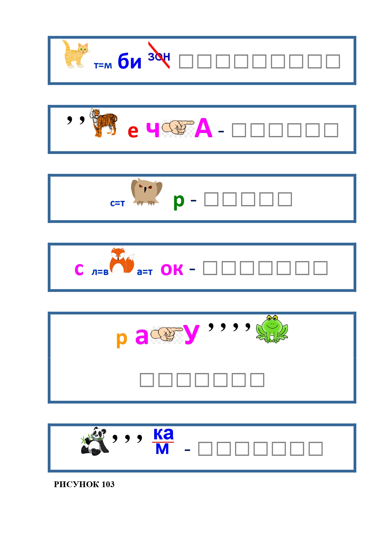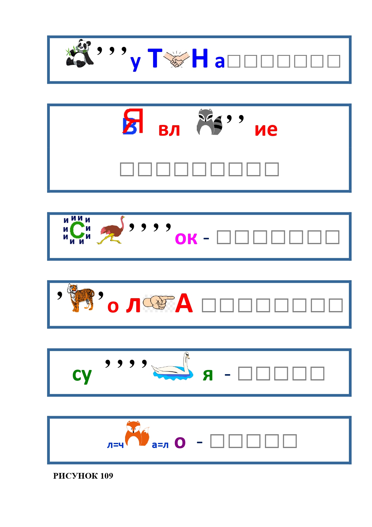 РИСУНОК 6: козёл, конь, кот, лебедь, лама, пчела