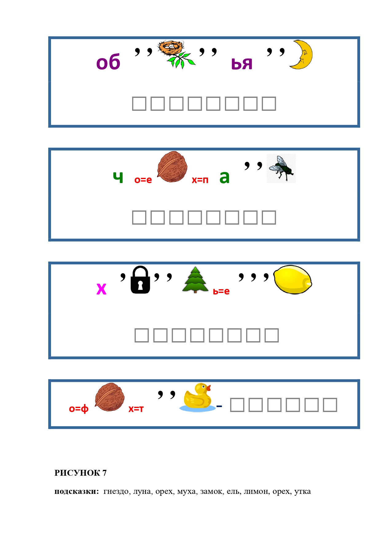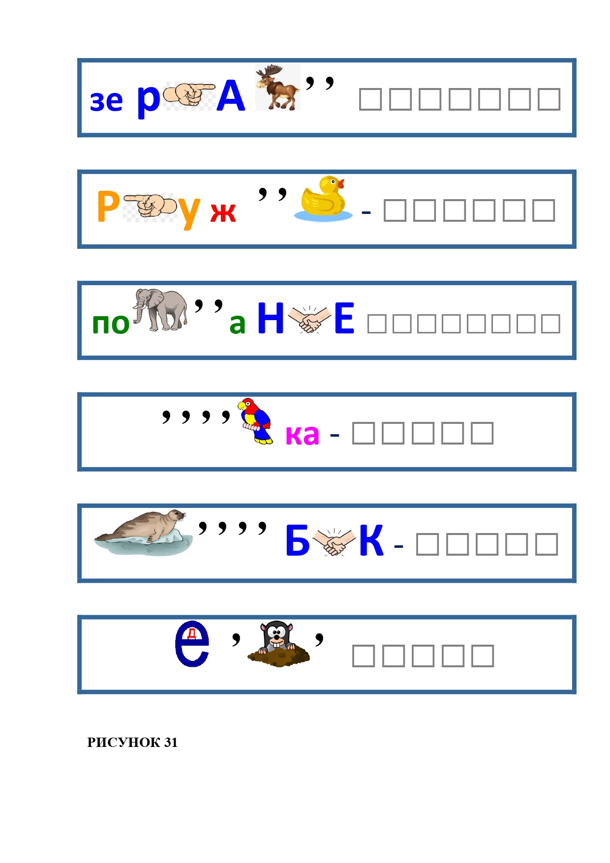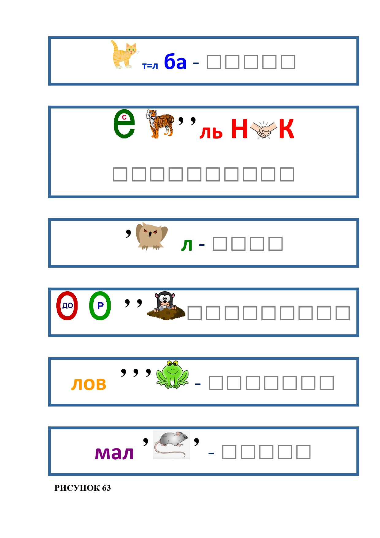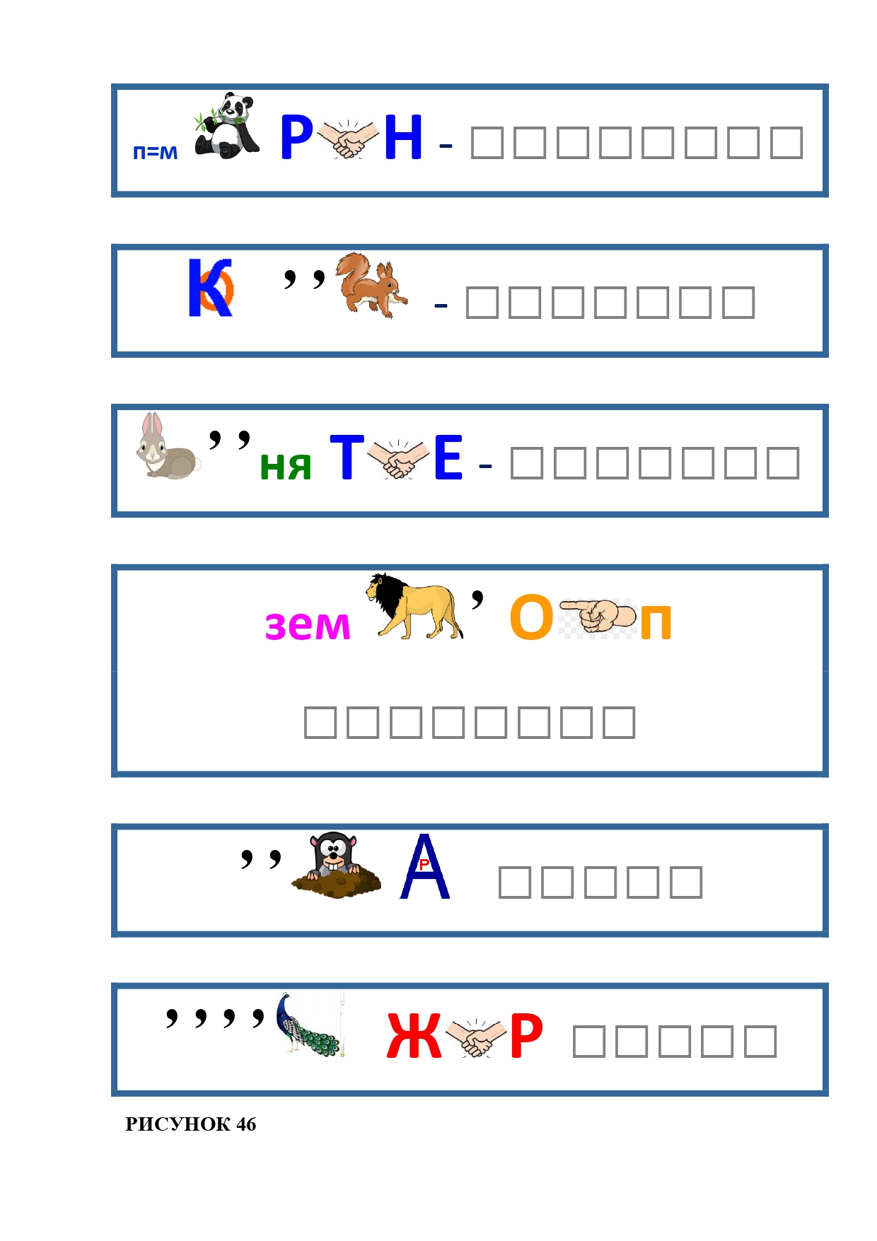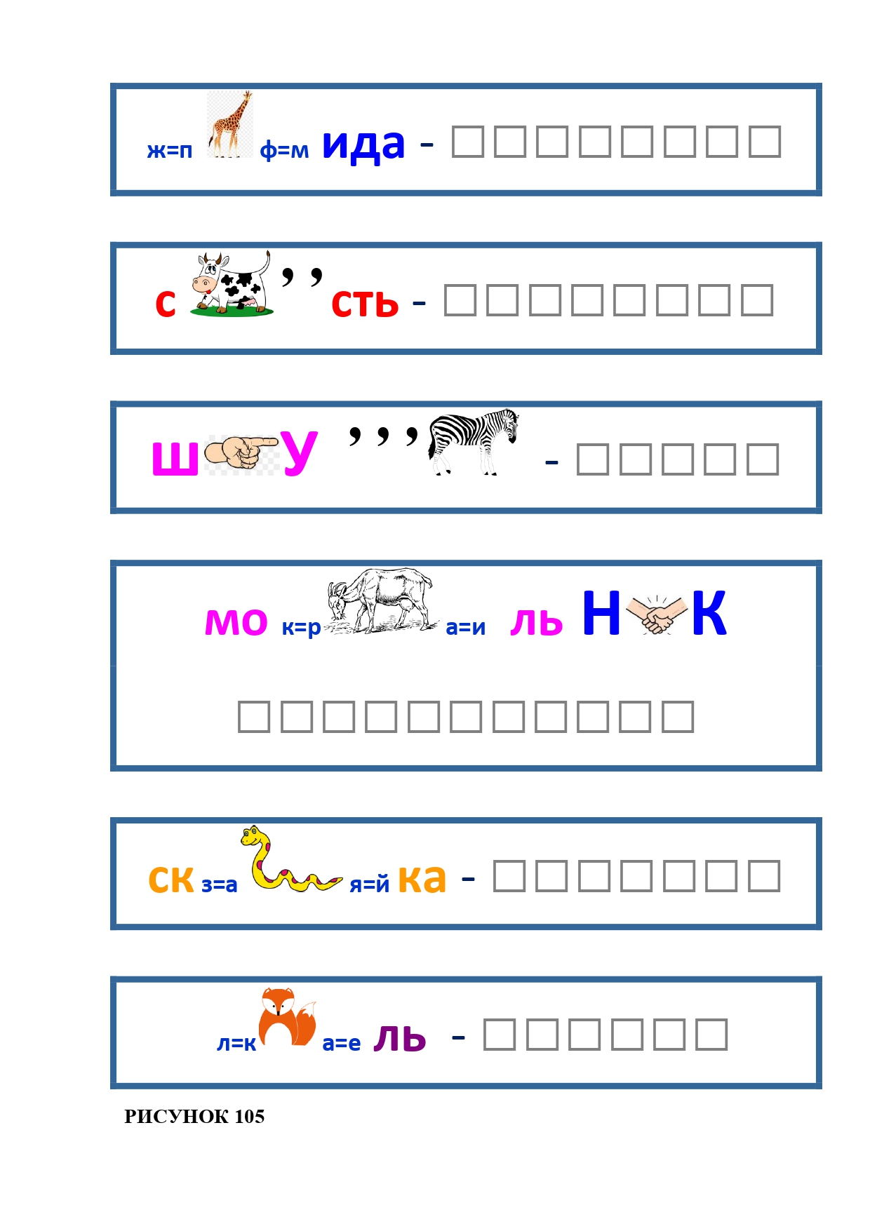 РИСУНОК 6: козёл, конь, кот, лебедь, лама, пчела