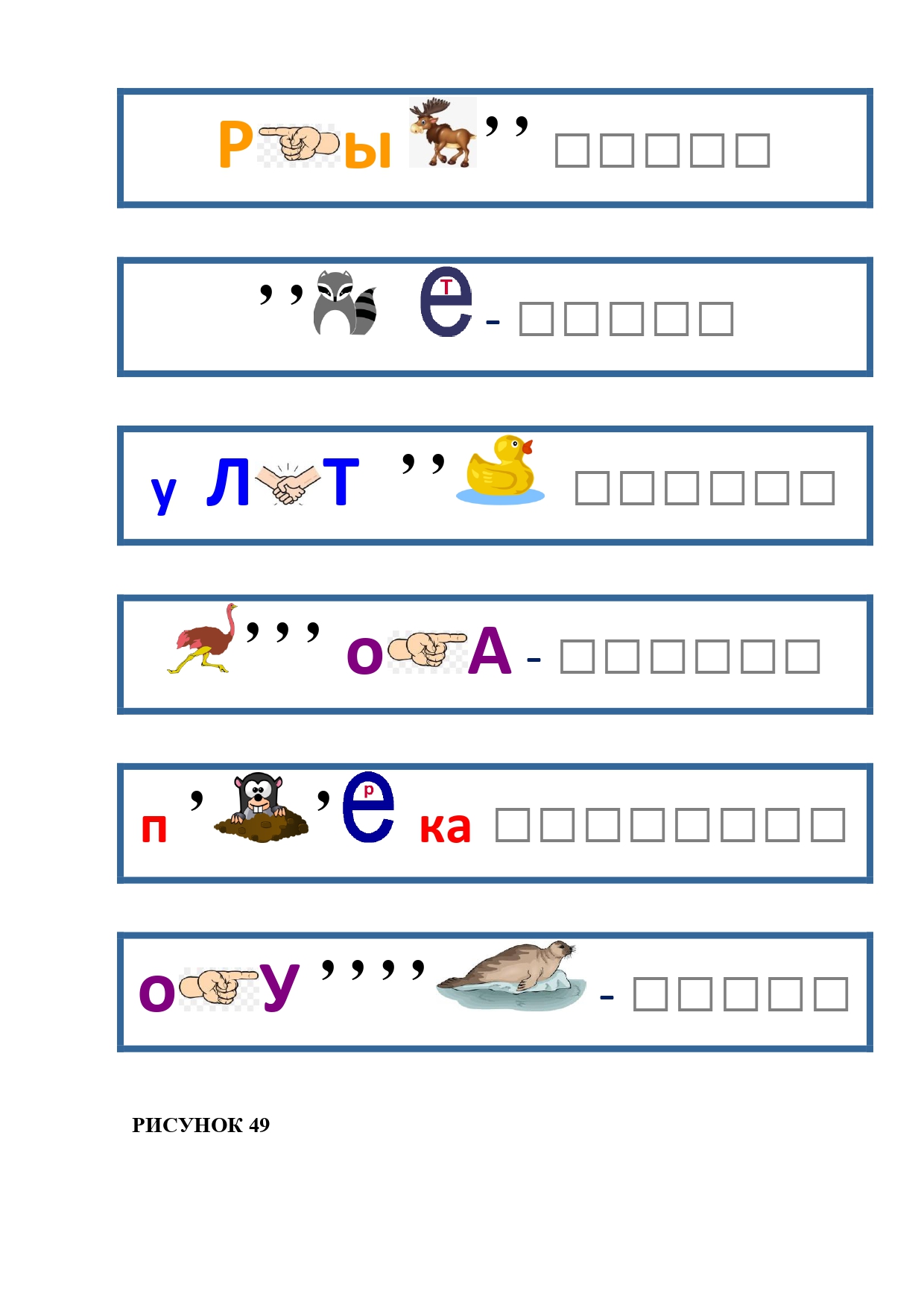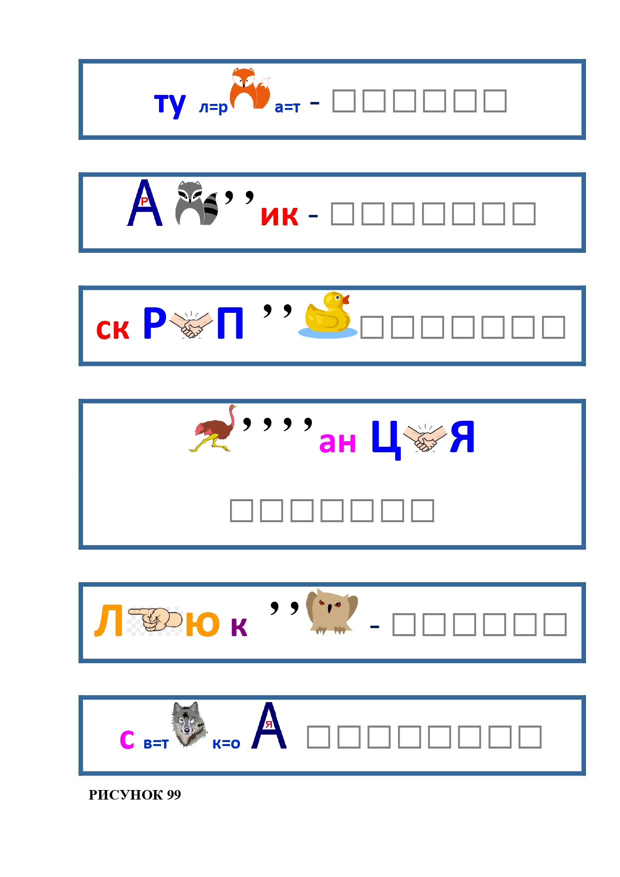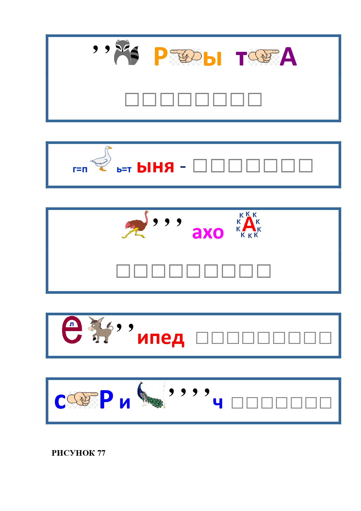 РИСУНОК 5: петух, баран, верблюд, енот, бык, кабан