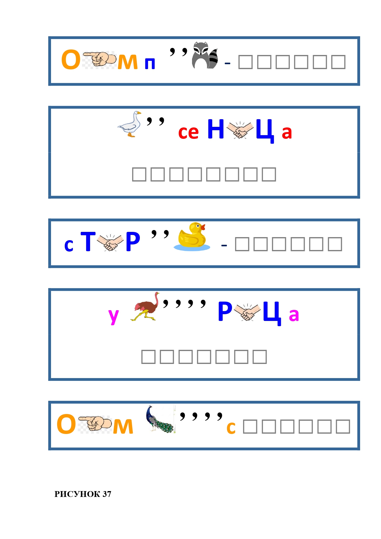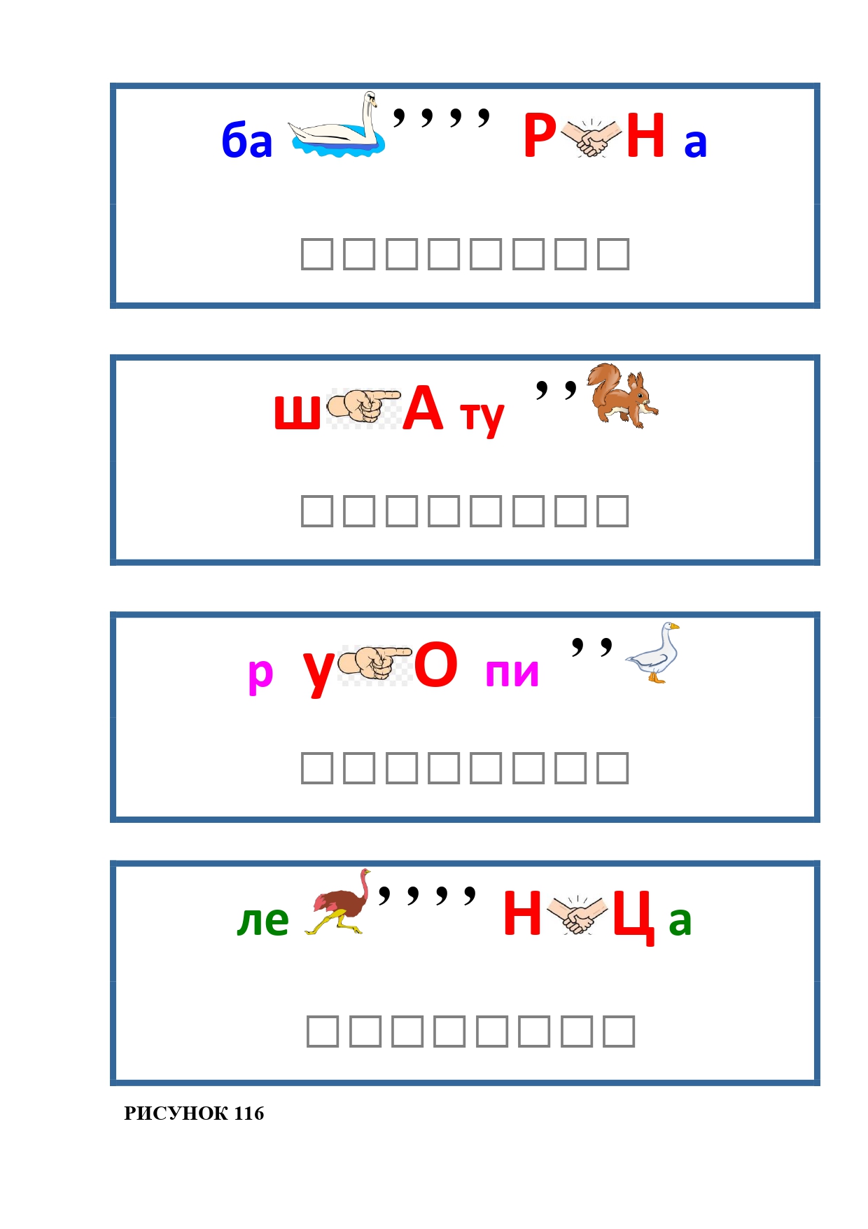 РИСУНОК 4: утка, голуб, попугай, канарейка, страус, буйвол