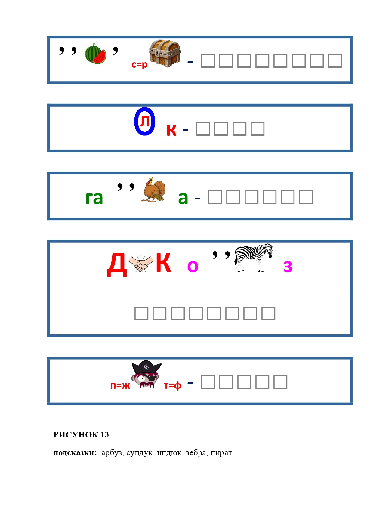 РИСУНОК 13: бурундук, волк, гадюка, дикобраз, жираф