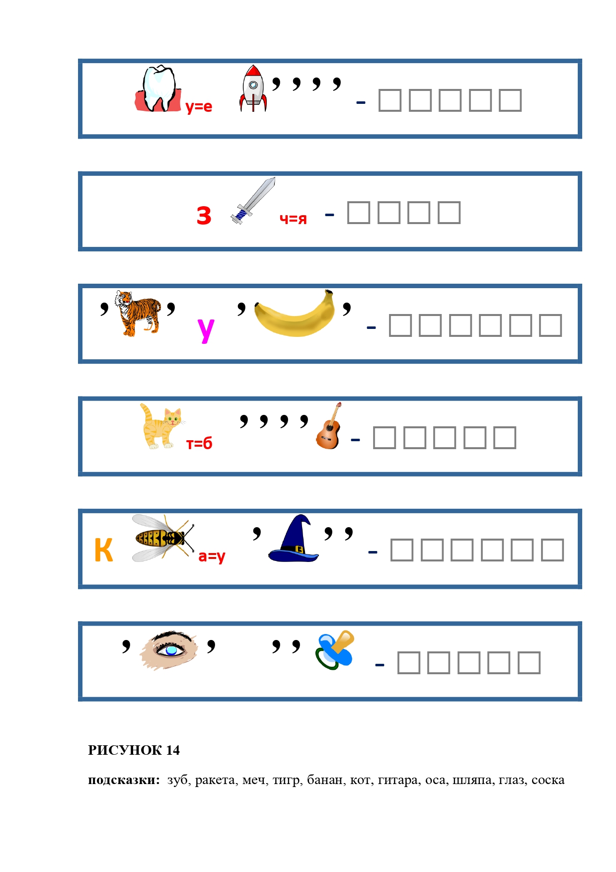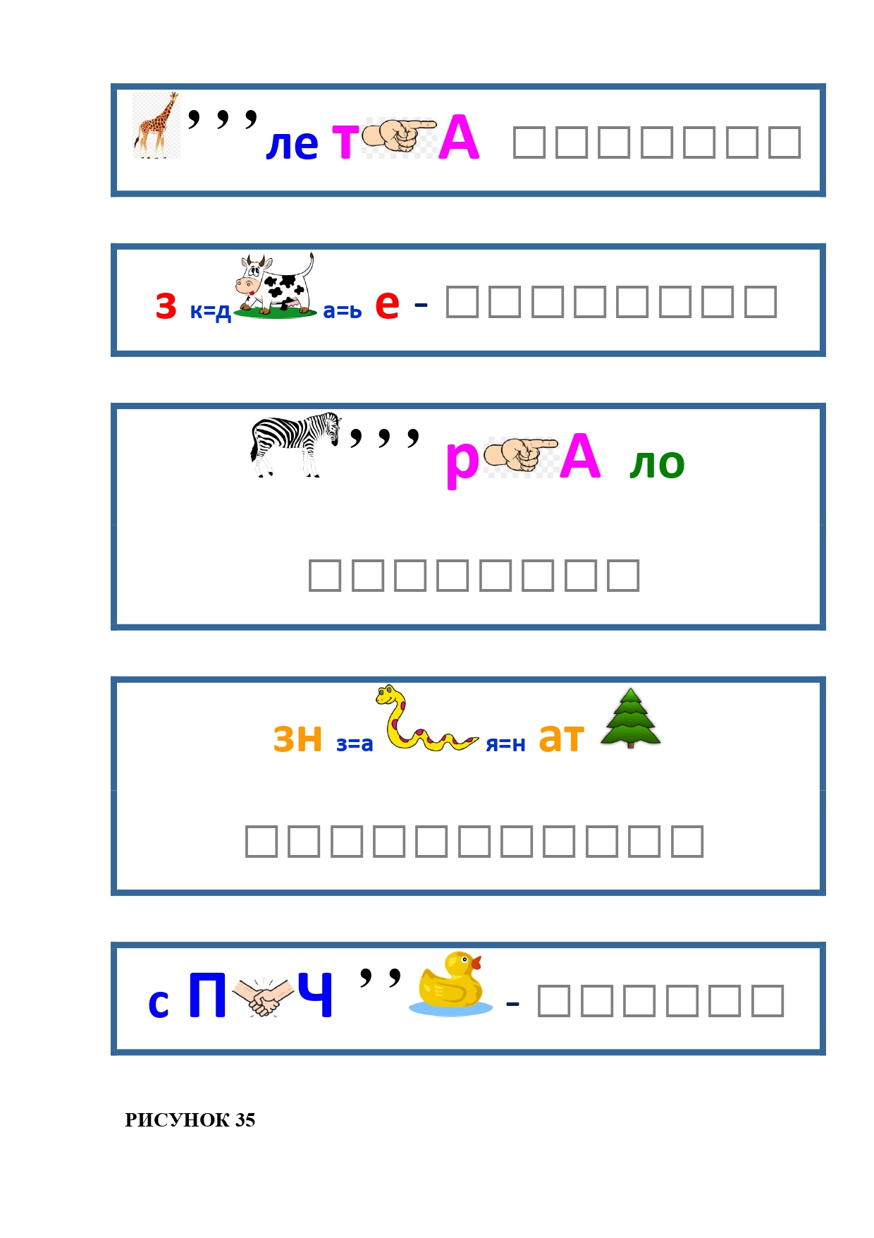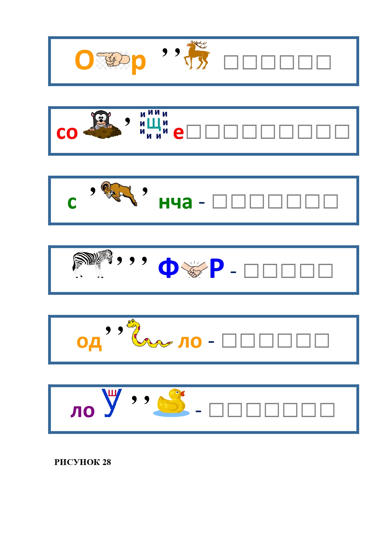 РИСУНОК 14: зебра, змея, игуана, кобра, косуля, ласка