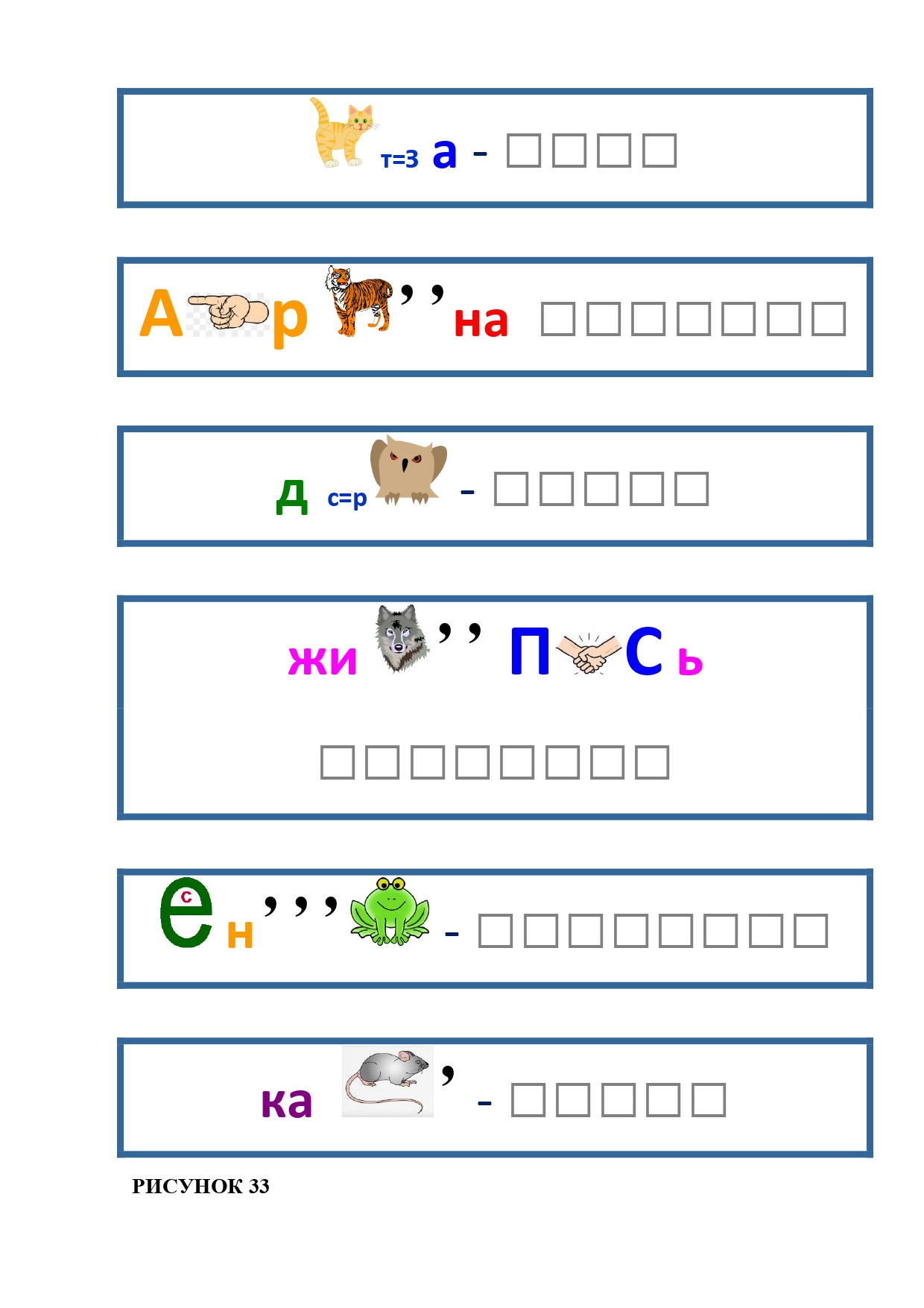 РИСУНОК 9: барсук, бегемот, бизон, варан, выдра, гепард