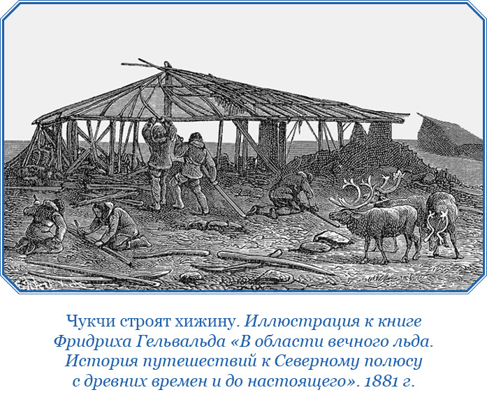 На следующий день нашли мы в селении только две семьи, прочие были в отсутствии у оленных чукчей, для торгов. Одна из этих семей переставляла юрту, что делается