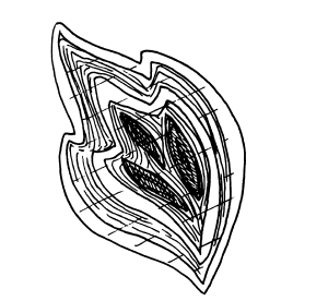 Если пень выкладывается плотными рядами, то листики надо всего лишь обрисовать. Выкладывая передние части пней, следует ориентировать жгутики сверху вниз, а при заполнении срезов пней выкладывать жгутики по окружности — от внешней части к середине.