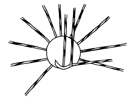 Как только клей полностью высохнет, трубочки-стойки надо по одной поднять вверх, на дно установить форму. Взяв длинную коричневую трубочку, сложить ее пополам, место сгиба зафиксировать на одной из сдвоенных вертикальных стоек и начать плести восьмеркой или веревочкой, оплетая по 2 вертикальные стойки. Для ровного плетения по периметру, каждый раз оплетая боковую стойку, следует промазывать место соединения клеем моментального действия. Трубочками коричневого цвета плести веревочкой 2 ряда (рис. 133).