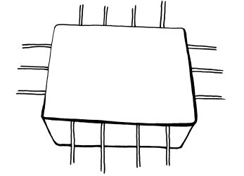 Крышку почтовой коробки надо аккуратно обрезать со всех сторон. Из бумаги скрутить достаточное количество трубочек. Ко дну коробки по всему ее периметру приклеить нечетное количество длинных бумажных трубочек — будущих вертикальных стоек. По желанию, можно клеить трубочки скотчем, или клеем ПВА, или клеем моментального действия. В каждом углу коробки приклеить специальную стойку, обеспечивающую ровность и аккуратность углов будущей шкатулки. Расстояние между стойками зависит от величины самой коробки, а также от предполагаемой плотности плетения. Чем меньше это расстояние, тем мельче и плотнее будет плетение. Оптимальное расстояние — 2–4 см (рис. 139).