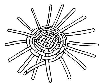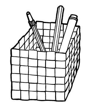 Достигнув нужной высоты, перейти к завершению работы над стенками и постепенно закрывать края. Поочередно немного обрезать лишнюю длину всех стоек, подравнивая их, и загибать друг за друга внутрь подставки. Концы стоек с помощью крючка спрятать между плетеными слоями, обрезать все лишнее и подклеить. Для изготовления ручки взять 3 длинные, максимально эластичные трубочки, сплющить их скалкой, чтобы они приобрели вид лент, и сплести из них простую косичку.