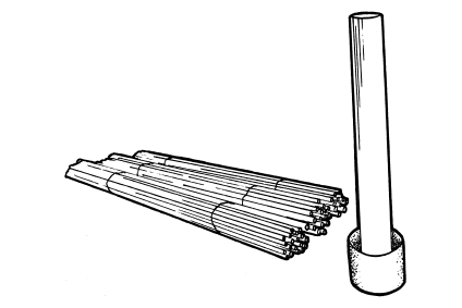 Длинные трубочки удобно красить в специальном приспособлении, сделанном из куска широкой полипропиленовой сантехнической трубы. Собственно, диаметр трубы зависит от количества заготовок, которое нужно окрасить. Изготовить такое приспособление очень легко. Сначала ровно обрезают оба конца трубы, зачищают при необходимости срезы. Используя универсальный клей ПВА или клей-гель для пластика, на один конец трубы герметично наклеивают пластиковую заглушку, чтобы красящая жидкость не вытекала из трубы. Заглушкой может послужить небольшая пластиковая емкость или любой другой подходящий предмет. Единственное требование — пластиковая емкость должна обладать некоторой прочностью, чтобы выдержать вес вертикально поставленной трубы (рис. 6).