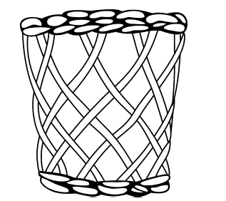 Ажурное плетение крестиком по способу выполнения очень близко технике плетения прямого ажура. В этой разновидности плетеного узора ажур желаемой ширины образуют стойки, не оплетенные поперечинами. Для ажурного плетения крестиком все так же подбирают стойки из особо прочных трубочек плотного кручения. Перед выполнением ажурных полосок нижнюю часть работы плетут любым плотным узором на желаемую высоту. Участок плотного плетения завершают краевым плетением веревочкой (1–2 ряда).
