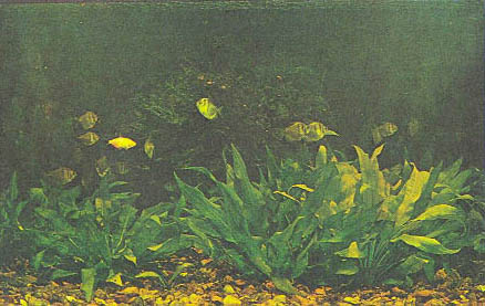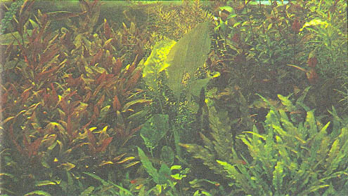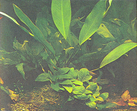 Пример культивирования растений в грунте (разные виды эхинодорусов).