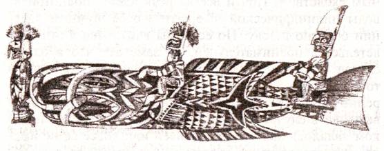 «Поглядев в том направлении, — говорит он, — я увидел некое темное пятно. Это было странного вида животное, которое приближалось к судну. Оно беззаботно плыло, высовываясь из воды, затем стукнулось о бок судна и взвилось на высоту почти первого мостика. Никогда в своей жизни я не был так изумлен и напуган. . По своей форме голова этого странного гостя напоминала лошадиную: имелись зеленые глаза, а на морде застыло выражение, которое мне показалось весьма угрожающим. Три туземца (из экипажа), которые тоже заметили его появление, окаменели от ужаса… Чудовищный морской змей рассматривал нас довольно долго, а затем рухнул обратно в воду и не спеша удалился.