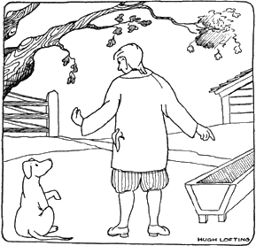 Он подвел меня к корыту, где я улегся и застыл совершенно неподвижно, пока он вписывал меня в свою картину. Эта картина теперь висит в Национальной Галерее. Она называется «Вечер на ферме». Сотни людей видят ее каждый год. Но никто из них не знает, что та симпатичная собачка, которая спит около корыта, не кто иной, как Джип собственной персоной — никто, кроме Доктора, которому я однажды показал ее, когда мы ездили в Лондон за покупками.