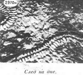 Когда эти снимки напечатали, то увидели на них то, чего до этого не видел ни один человеческий глаз. На одном из снимков, снятом на глубине трёх километров, увидели след не известного людям морского животного. Вот этот снимок.