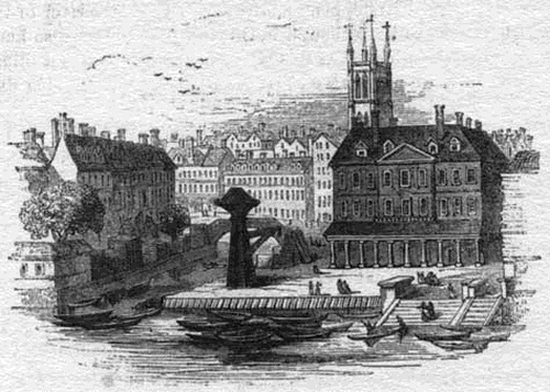 Когда-то берега Флита в нижней части соединяли пять мостов, три из них каменные. На месте нынешнего Холборнского водопровода стоял Холборнский мост; его название — производное от old boune (старый ручей, или поток). Тернегейн-лейн, что отходит от Фаррингтон-стрит, была почти глухой и неожиданно выводила к берегу, что соответствует ее прозванию (turn again — сверни дважды). К востоку от реки возвышался холм из гравия, который впоследствии пошел на строительство Сити. А к западу простиралась болотистая низина, до конца не осушенная. Флит относился к западным районам Лондона древнеримского периода и оставался территориальной межой в течение 2000 лет. Во время Гражданской войны именно здесь начали строить земляной вал для защиты Сити. И до сего дня река разделяет границей Вестминстера и Сити.