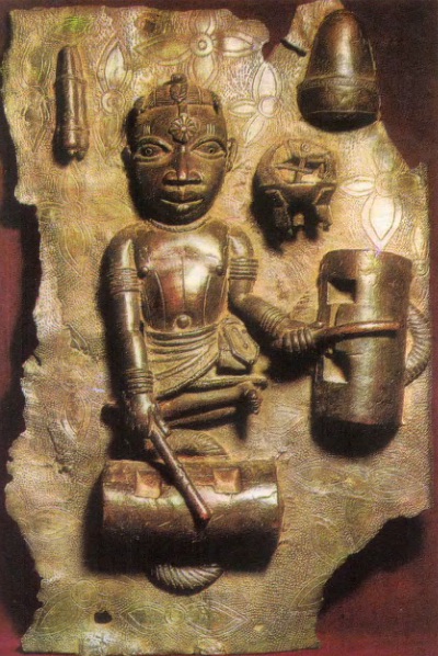 Барабанщик. Бронзовый рельеф из королевского дворца. Бенин (Нигерия). Высота 45 см. Британский музей