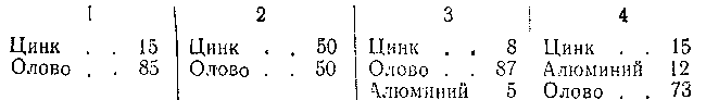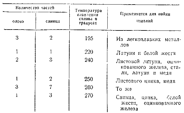 Для спайки мелких железных, медных и цинковых деталей, пластинок, проволоки можно пользоваться припоем, состоящим из 1 части олова и 2 частей свинца.