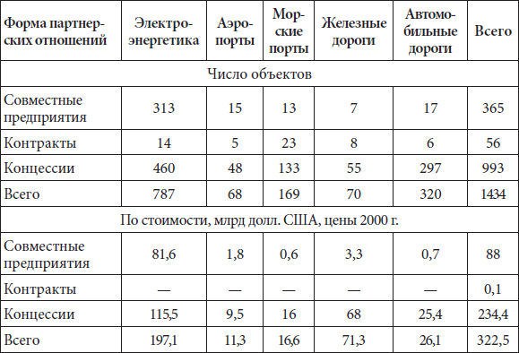 Следует отметить, что преобладающей формой государственно-частного партнерства являются концессии [204] , в которых эффективность на различных стадиях инвестиционного процесса успешно сочетается с контролем со стороны государства.