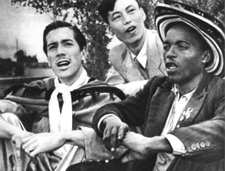 Эта песня появилась в канун фестиваля. Хорошая песня! Уже на третий день она стала гимном фестиваля. Ее пели в автобусах, пели в столовой, пели на стадионе. Особенно задушевно звучала она вечерами, когда уставшие за день делегаты усаживались на лужайке перед гостиницей. Очень хорошо помню ласковые августовские вечера. Темная листва молодых деревьев, яркие одежды, ласковое закатное небо, незнакомая речь и песни…Сколько песен пелось в те вечера! Африканские, канадские, французские, чешские, финские…Наша песня «Подмосковные вечера» звучала чаще других. Слова, разумеется, знали немногие. Но задушевная, чистая мелодия была понятна и белым, и желтым, и черным.