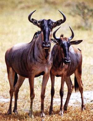 Гну любят свежую молодую траву и оседлую жизнь ведут до той лишь поры, пока травы не высохнут. И тут начинается странствие, которое все, бывавшие в Африке, называют одним из чудес света. Зрелище в самом деле покоряет любого. Тысячи крупных животных непрерывным холстом движутся по веками сложившимся маршрутам. Идут кучно, что называется, «бампер в бампер», нагнув голову, чувствуя впереди идущего и тех, кто движется сзади.