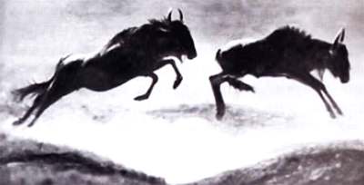 В 1969 году такую переправу я видел сверху, с маленького самолета. Одолев реку, возбужденная и истощенная масса животных рассыпалась по равнине и была похожа на разворошенный муравейник. Но после отдыха мигранты, опять ставшие на проторенную веками пыльную сакму, двигались дальше живым потоком. Даже с самолета не видно было ни начала, ни конца темной живой реки. За год (с юго-востока на северо-запад — туда и обратно) по африканским степям антилопы проходят полторы тысячи километров.
