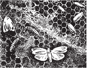 Полный круг развития восковой моли равен 6–9 неделям: яйца развиваются 8–10 дней; гусеницы – 20–25 дней; куколки – 10–18 дней.