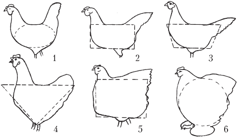 Постав туловища и типы туловища у разных пород отличаются. Грудь хорошо развита у кур мясных пород.