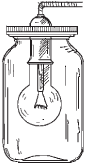 Необходимо взять стеклянную литровую банку с полиэтиленовой крышкой. В крышке прорезать отверстие по размеру резьбы электропатрона. Патрон нужно раскрутить и между верхней и нижней его частями вставить крышку, а затем снова его скрутить. Затем нужно ввинтить лампочку на 15–25 Вт, накрыть крышкой с лампой банку и включить в сеть.