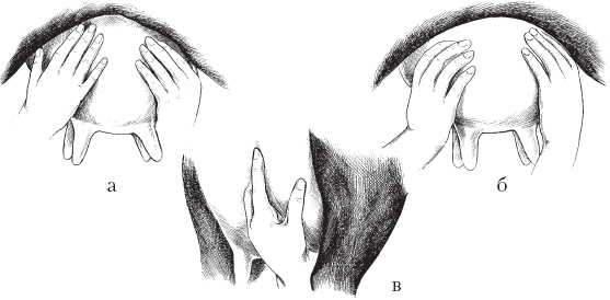вниз. Также массируют соски, сжимая их 2–3 раза без выдаивания молока и подталкивая все четверти вымени у основания сосков снизу вверх. При отечном и напряженном вымени массировать его нельзя – только легко поглаживать и подталкивать доли вверх.