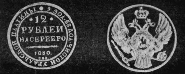 Благодаря предприимчивости министра финансов Е.Ф. Канкрина с 1828 г. в России стали выпускать платиновую монету 3-, 6- и 12-рублевого достоинства. Стоимость платины в это время была в пять раз выше стоимости серебра, поэтому чеканка монеты стала стимулом для роста добычи платины на Урале. В 1843 г. добыли уже 3500 кг платины… Разумеется, это сказалось на цене, платина стала дешевле.