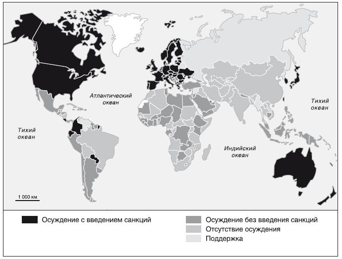 Карта реакции государств на вторжение в Украину, составленная Groupe d’etudes geopolitiques (Группа геополитических исследований) 7 марта 2022 года, представляет собой глобальное выражение западного нарциссизма. Она показывает, какие страны активно осудили Россию, приняв принцип санкций («осуждение с ответным ударом»). Можно увидеть, насколько изолирован Запад. Только Северная Америка, Европа, Австралия, Япония, Южная Корея, Коста-Рика, Колумбия, Эквадор и Парагвай осудили Россию «с ответными мерами». Если отбросить четыре латиноамериканские страны, которые, за исключением анархичной и динамичной Колумбии, являются крошечными, то западная сфера состоит лишь из союзников или военных протекторатов Соединенных Штатов. Страны, активно поддержавшие Россию, образуют довольно неприятный с точки зрения демократии блок: Венесуэла, Эритрея, Бирма, Сирия и Северная Корея. Не будем делать из этого никаких выводов в плане ценностей. Раймон Арон однажды сказал: «Вы выбираете своих врагов, но не выбираете своих союзников». Идеал суверенитета России оправдывает все союзы, вплоть до недавнего «медового месяца» с Северной Кореей. Россия находится в военной осаде. Рискуя шокировать людей, я бы с удовольствием применил формулу Черчилля, оправдывающую его союз со Сталиным, этим другим мясником, к отношению Владимира Путина с Ким Чен Ыном, хранителем семейного тоталитаризма Северной Кореи: «Если бы Гитлер вторгся в ад, я бы по крайней мере благожелательно отозвался о дьяволе в палате общин» [149] .