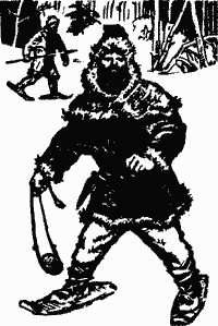 Оба они бежали по тропинке. Уоми настигал. Суаминт понял, что на тропе ему не спастись, и кинулся в сторону. Расчет был верен. По рыхлому снегу Уоми без лыж не мог бы за ним угнаться. Но вдруг суаминт зацепился и шлепнулся ничком. Он стал подниматься, но было поздно.