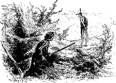 – Вы видите, мы дошли до их поселка, — шепнул молодой человек. — А вот тут и дикарь, который, верно, помешает нам пробраться дальше.