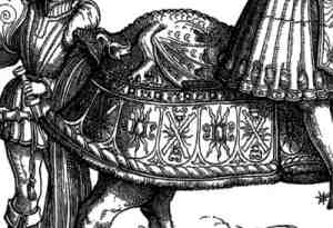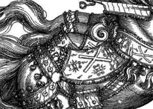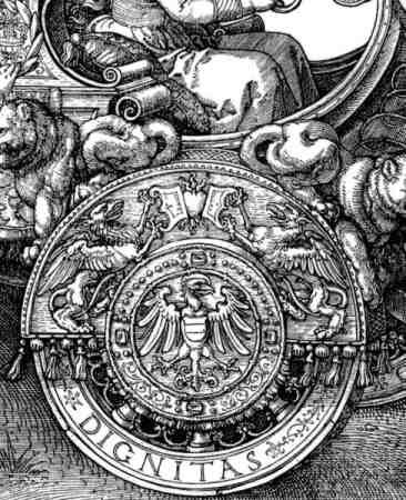 На одной из гравюр «Триумфальной Процессии» уцелела дата, см. рис. р65. Написано: I5I7. Считается, что это — указание на 1517 год в современном понимании такой записи даты. Однако, как было показано в [ХРОН1], гл. 6:13, ранее первая буква I была сокращением имени ИИСУС. То есть обозначение 1517, скорее всего, понималось как 517-й год от Иисуса, то есть 517-й год от Рождества Христова (впрочем, может быть, иногда считали и от года его смерти). Но, согласно нашим результатам, изложенным в книге «Царь Славян», Андроник-Христос родился в 1152 году, а распят был в 1185 году. Следовательно, «517-й год от Иисуса» — это либо 1669 год (если отсчитывали от Рождества Христова), либо 1702 год (если отсчитывали от года смерти). Получается, что «Триумфальная Процессия» была создана примерно во второй половине XVII века. Что вполне согласуется с другими независимыми наблюдениями, изложенными выше.