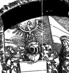 Рис. p61. Двуглавый орел с поднятыми крыльями символизировал полумесяц (поднятые крылья) со звездой=крестом (шея и две головы орла, направленные в противоположные стороны). Взято из [1273:2], лист 68.