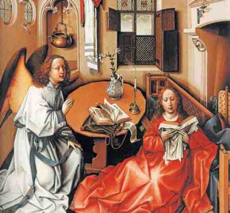 «Благовещение». Робер Кампен или его последователь. Центральная часть триптиха. Якобы около 1427–1428 годов. Метрополитен-Музей. Нью-Йорк. Взято из [143:0], с. 63.