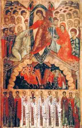 «Сошествие во ад с избранными святыми». Русская икона середины XVI века. Государственный Русский Музей. Взято из [745:1], с. 246, икона 501.