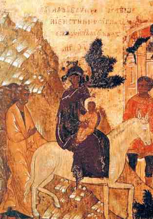 «Бегство в Египет». Русская икона. Первая половина XVI века. Собор Спасского монастыря. Ярославль. Взято из [308:1], с. 54, икона 20.11.